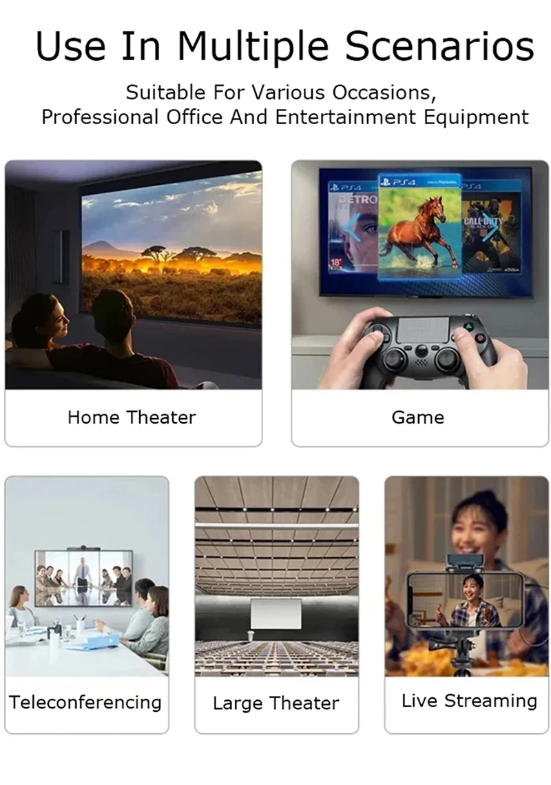 • Resolution Support: 4K30Hz, 1080p60, 720p60, and more